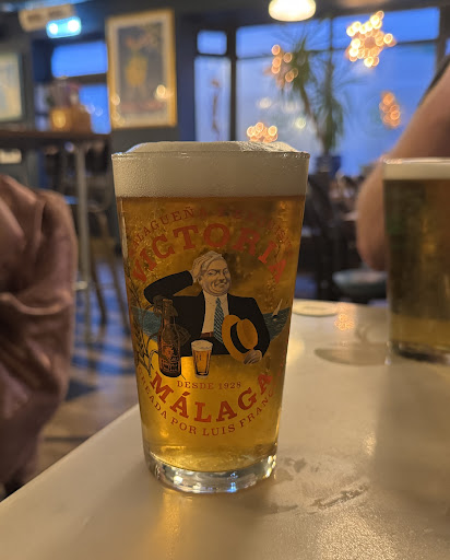 The beer was Victoria Malaga, seeing this more often these days. On the up. A decent lager and actually brewed in Malaga, as opposed to Madri, which comes from sunny Tadcaster.