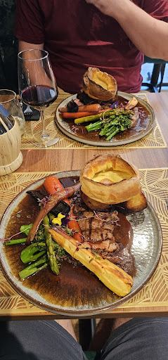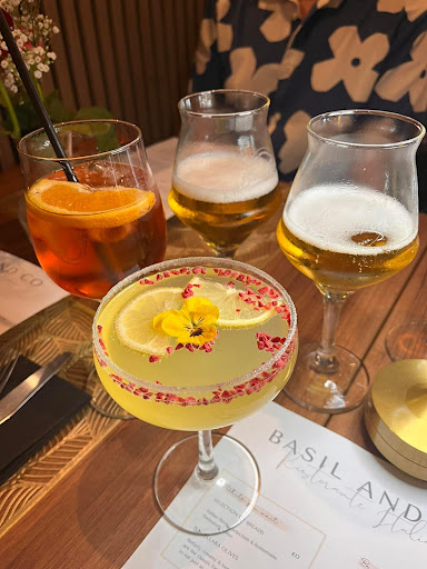 Took a stroll along the sea front before deciding on finding somewhere to have Sunday lunch. Walked the length of the high street before deciding to eat at Basil & Co. Lovely looking restaurant with a small yet delightful looking menu. We were pleasantly greeted and a table found for us. We hadn’t made a reservation, but would do in future since it did end up being quite busy. The staff were very polite and attentive. The specials were explained and drinks promptly brought over. They have a nice little selection of wine. The Chianti was particularly good. We opted for a starter from the specials menu and the rib eye Sunday roast. The pork wellington starter was delicious as were the three musketeers (selection of bread with varying toppings). We felt the bread starter was a little on the large side. I’d have been happy with half the portion, but we understand everybody’s appetite is different. The pork wellington was delicious with a sort of ratatouille accompaniment. The Sunday lunch was one of the best we’ve had at a restaurant in a very long time. Everything on the plate was cooked to perfection. The carrots were delicious, the broccoli was nice and tender, with the right amount of bite and the asparagus was absolutely delicious. The parsnip felt like a delicious treat, too. There was just the right amount of everything. Gravy was to die for and of course the potatoes were beautifully cooked. The only thing I can possibly complain about was that the rib eye was a steak and not from a rib roast. Because of this I would probably have the Pork Belly next time. I prefer to have thin slices of a roasting joint of beef with my Sunday lunch. It felt like too much meat on the plate. That said, the meat was cooked to perfection. We were so full we couldn’t manage dessert, but I have no doubt they would have been as delicious. We’ll definitely be revisiting in the near future. Thank you to the staff and chef for a lovely Sunday...