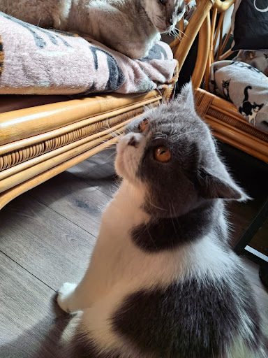 The cats have lots of scratching posts made from the pillars of the old tudor building with sack cloth around them! Lot's of places to climb, they're free to leave the cafe space into one of the backrooms for privacy and to use their litter trays. The cats looked very happy and healthy, some relishing the attention, some just happy to snooze.