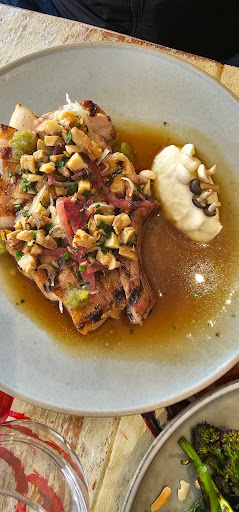 The menu at Land + Sea is thoughtfully designed around fresh, local ingredients, especially the seafood, which takes center stage. The tapas-style dishes are a particular highlight, allowing diners to explore a variety of local flavors in shareable portions. The cuttlefish, for example, is tender with a perfect char, often dressed in a light, tangy marinade that brings out the best in its delicate flavor. The cod cheeks, known for their buttery texture, are lightly seasoned and seared to create a crispy exterior with a soft, flaky center. Paired with a lemon or aioli dipping sauce, they capture the essence of Whitstable’s fresh, ocean-sourced cuisine in each bite.