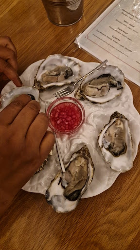 Visited last night. First impression was very good. Nice and cosy, friendly staff..Sat in a booth, which was great..Ordered bottle of white wine. Nice to drink, just needed to be chilled more. I absolutely loved the menu. If your a seafood fan like me your in heaven. My husband ordered the oysters for a starter. They tasted great, however was disappointing to only receive 3 for £10!..I ordered the soft shell crab burger. I was highly disappointed. It was mainly batter I had. There was a piece of white crab that would fit on a T spoon, the rest was the orange roe to try to fill it out..for £14.50 that was a joke! My husband had the pitmaster..He said it was nice, had chips as a side. They was cold, but we didn't say, so i accept that. We needed to rush, due to theatre tickets.I'm happy to pay good prices, if you get value for money. Such a shame because it has put us off to return. We so wanted to experience more of the menu at...