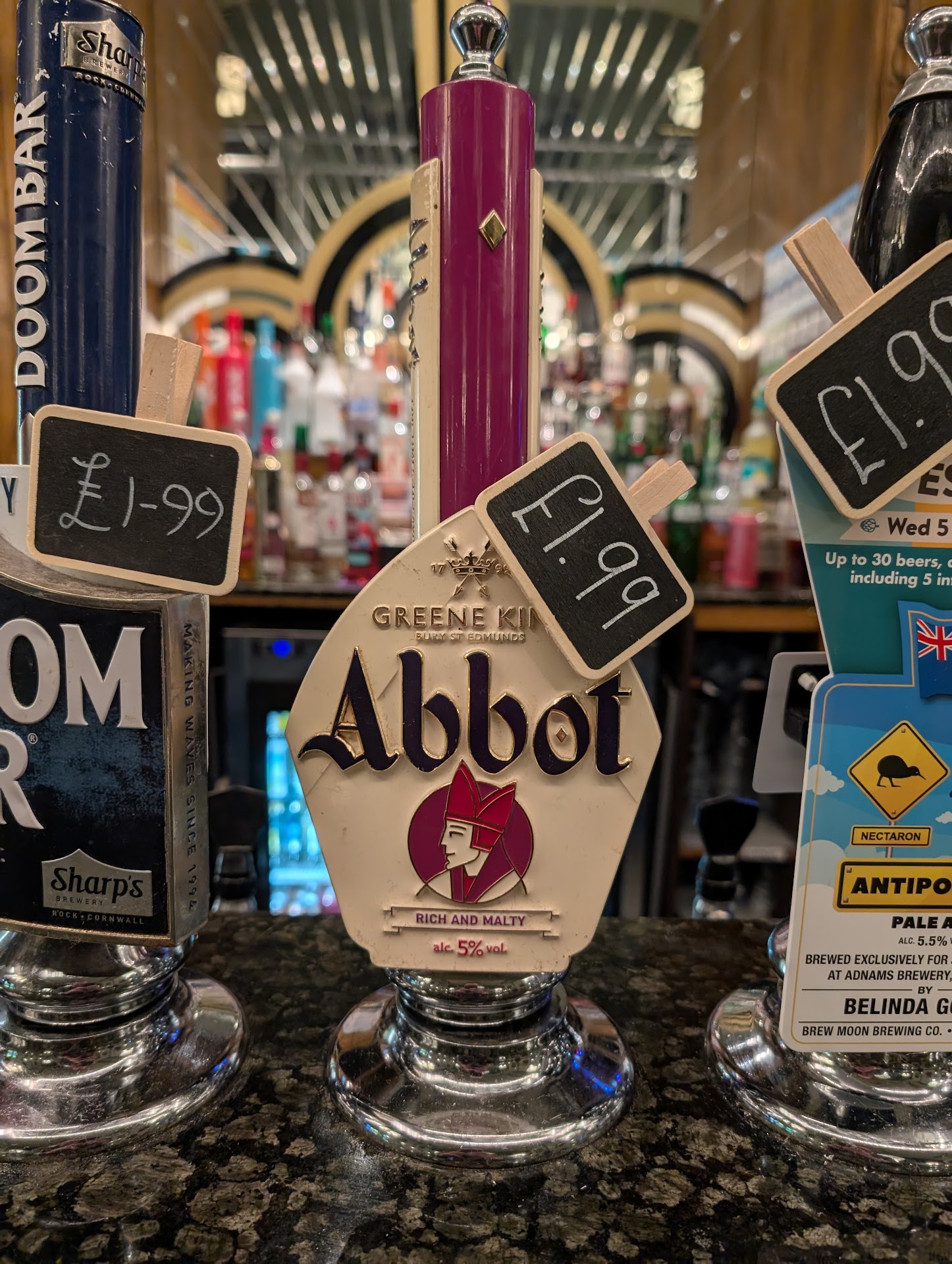Read morePros: The food was very affordable and was good. The beer prices were insanely low, I literally couldn't believe it. I've attached a photo showing that you can get a pint of Abbot Ale for £1.99. That is much cheaper than I paid for the same pint of beer when I visited England in 2008. Wetherspoons gets a bad rap locally as being kind of the McDonald's of pubs. But this particular location had a lot of character, being converted from an old theater. I had an English breakfast here, and I had an Indian curry dinner here on another visit. All the food I had was not just acceptable for the price, but exceeded all my expectations.