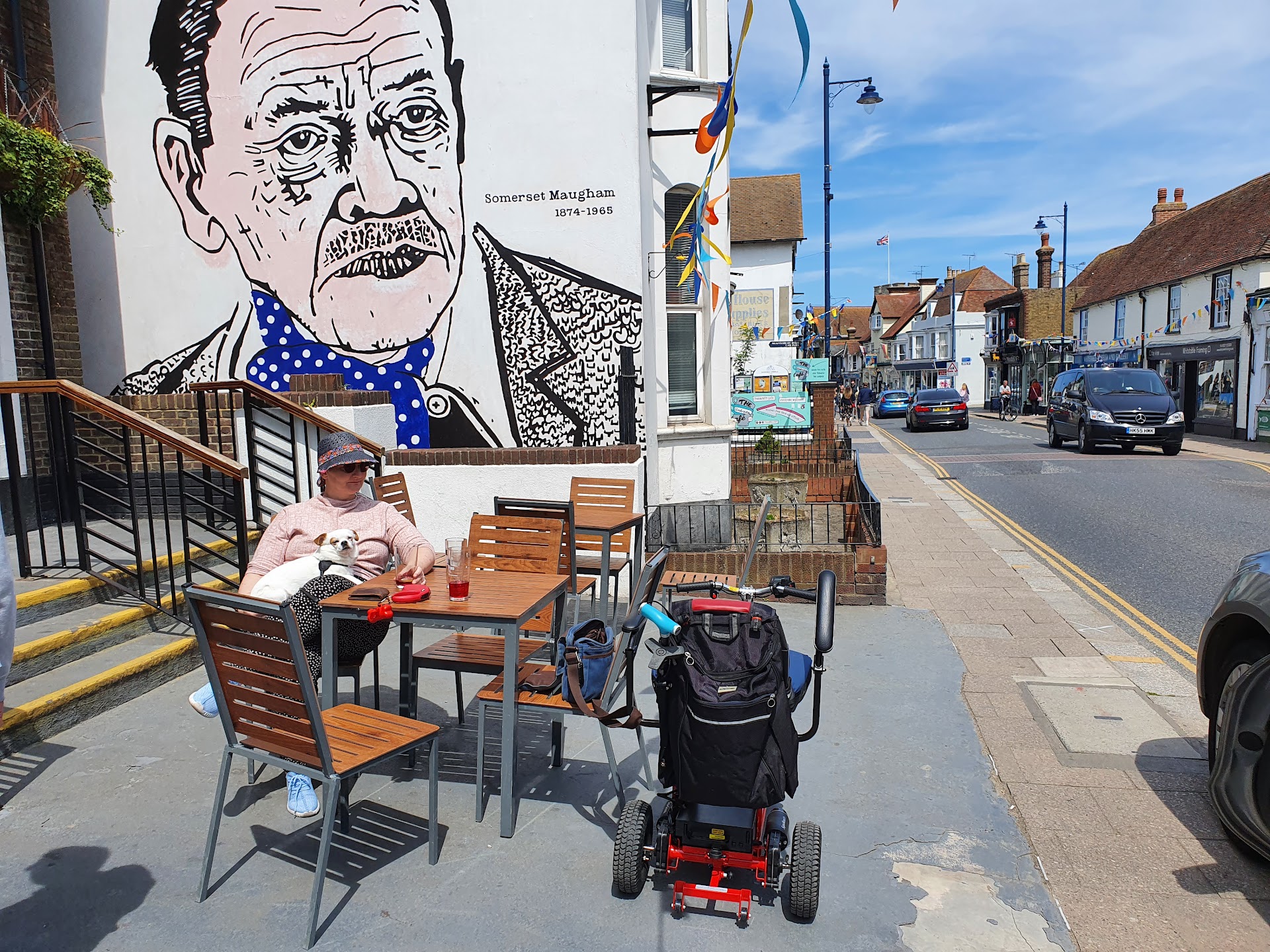 We sat outside The Peter Cushing Weatherspoons in Whitstable yesterday where we enjoyed a lovely drink and a brief rest from the busy town. After sitting there for around 20 mins, i went in and brought out our second drink. Around 5 mins later we were approached by a member of staff who asked us to drink up and leave because of the "No dogs policy" he was polite and in no way rude, I pointed out that we were literally an arms length from the public footpath, but he was adamant we had to leave. I would like to point out that there is no physical barrier between the public footpath and the seating area. In fact if you look at the photo, if the seating are is the space with grey floor paint, then the seating area actually encroaches onto the public footpath There are no signs and nobody else was seated outside. People passing by with dogs on leads were also unaware that their pets were consistently breaking weatherpoons company policy by allowing their dogs to step on the grey area adjacent to the footpath. With hindsight I could have simply seated myself on my mobility scooter just outside the seating area with our dog and still enjoyed our drink and chat, but honestly I was just too stunned to even point out that there were no signs, no physical barriers or any kind of fence, I would also have caused an obstruction due to the seating area taking up part of the footpath. I read the company policy and part of it states that some customers are scared of dogs and want to drink without fear...how does that apply to this particular area? I witnessed so many dogs encroaching on to the seating area as their owners passed by on the path with them. Might I suggest that in order to protect their customers, Weatherspoons either erect a large fence separating the customer from the danger of passing pooches, or place signs up in the immediate area so that the owners of dogs cross to the opposite side of the road when passing to minimise any potentially frightening unsolicited and unwanted dog contact. Alternatively apply some common sense and sensible business practice in an area where so many people are dog owners and make that are a dog friendly area... Just for perspective, opposite this particular weatherspoons is a cafe, a small friendly cafe with a rear courtyard called the Whitstable coffee company.. they welcomed us in and not only insisted we bring our dog inside to eat, but they gave him treats and a drink... Do better weatherspoons.. be like the Whitstable...
