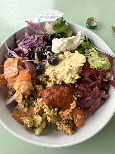 Read moreEhh, I had really high hopes because of the queue, I love salads and plant based food and the menu today sounded really good - harissa cauliflower tabbouleh, sweet and sour puy lentil, slaw, ferments, spicy kimchi etc. however it was very “raw” and not much flavour at all. The slaw and leaves were completely plain, kimchi maybe a tiny kick but not at all what I would call spicy, just overall good, fresh, but not brilliant. I finished it and wasn’t unhappy but I have been to other places that make you want to be vegan or reconsider what’s possible being plant based but this didn’t do that for me. It was very clear I was eating a lot of vegetables with no real show stopper. I would go back and try the fritters or something maybe but not the Buddha bowl again. The people were nice, I was served fairly quickly (after I queued for quite awhile) and the warm food options looked nice but I am not convinced there’s anything very seasoned/flavourful based on...