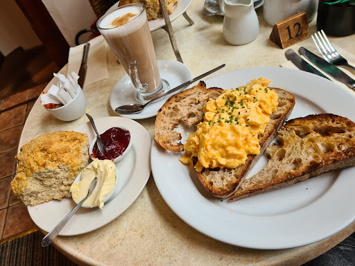 Ā Ā Ā Read moreWas greeted as soon as we walked in by a friendly employee and offered a table inside. It's a quaint cute little tea room. Service was quick and very efficient, all the staff friendly and helpful. The food arrived quickly and was way above expectations. The menu is bigger than expected. There is breakfast, lunch and afternoon tea menus. Good selection of teas and coffees. Great value for money and incredibly tasty. The scrambled eggs were delicious and the scones were amazing. Really good coffee. My friend ordered cream tea for one which came with two scones and enough tea for probably around 3/4 cups, he took one of the scones home for later as the scones really are filling (coming from the guy who skipped breakfast so we could eat here at lunch!) There was a man playing a piano which was nice to hear / see. Toilets are on the top floor but there seems to be only one per gender so maybe a wait to use if it's busy. You can dine inside, there's a few tables outside the front and there was a garden out the back with several tables (but we not being used by the looks of it for some reason). I chose to purchase an extra scone as take out for my lunch tomorrow. Highly recommended & I'll be back when I next...