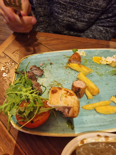 Went for lunch table of 5 and a baby. Waitress recommended getting the Greene King app, tried this all signed in. The first problem was drinks, not all on the app, and some dishes as well. So when I asked behind the bar, the lady said there was an issue with drinks going to the machine in the bar. So we placed our order at the till. I ordered the older person's menu, three items etc Only the dessert I wanted was not available, so I only had 2 tomato soups and scampi. The mixed grill was ok except the chicken piece was rock hard and only warm. The lasagne again was only warm. The hunter's chicken was small and again dry and hard to cut See pictures of the left pieces as inedible. The steak and ale pie failed to arrive, so this was hot but 14 minutes late. Time for dessert tried the app also didn't work, I will try again hoping for hotter food, which will be returned and also any food issues, which I don't normally do.