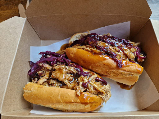 Amazingly wonderful delicious venue, I actually followed my nose here and was further enticed in by the homey chic wood and black interior and smiling gentleman behind the counter. Plenty of places to sit, the place was clean and cared for, the menu wasn't overwhelming and if you didn't want something that came with the choice of meal you are pleasantly offered an alternative accompaniment. The food, generous portions served in a take away cardboard box which is packed with enough to happily fill anyone's belly and allow you an easy take-home option if you can't fit it all in one sitting. The pulled shoulder of pork in apple sauce (I substituted apple sauce for red cabbage) and a big pour of gravy was delicious and just the right amount portion wise even if I did have to resort to attacking it with a knife and fork so it was a delectably messy encounter! My companion ordered the open Yorkshire shredded turkey breast and thigh served with pigs in blankets and cranberry sauce with red cabbage, potatoes and green beans as trimmings which they enjoyed more than a pig in muck. The owner was lovely and engaged in conversation about himself, the place and genuinely interested in conversation which was nice. Lots to love about this place if you are wanting to dive in and out, order on line or just want to sit and watch the world go by while enjoying some hearty eats. Will definitely...