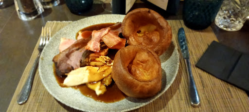 Ate here with my wife on Sunday 2/11. We were greeted very warmly and professionally by a gentleman who quickly arranged for us to be taken to our table. It was just after 4.15 and it was clear that they had been very busy with Sunday Dinners as it packed with diners who were just finishing. We were asked if we wanted drinks after about 10 minutes of being seated and the service at that time was very good and efficient. Our starter of haggis bon bons was lovely and our chicken main and roast beef main was brought out without any delay and was very nice and good quality. However, that is when the service stopped, our food was put down in front of us and we were told 'enjoy your meal', not asked if we wanted any sauces or anything else (as everywhere else does). There wasn't enough gravy on either plate so effectively we ran out and it became dry. No one came to ask if everything was ok with our meal to us or any other table around us and we couldn't find anyone to ask. Indeed after we had finished, we waited at the table for 20 minutes with our plates but no one came so I had to go and try and find someone to pay the bill. We would have definitely had desserts if the service had been better but we felt that we wouldn't bother after our experience and no tip was left as we felt that it wasn't warranted. It was a shame as our initial welcome was excellent and the food was good but the staff, although professional, seemed to just not bother looking after our side of the restaurant once the food had arrived. It could definitely be a 5/5 with a couple of...