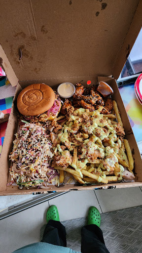 Read moreWhat a truly delightful wee place! Our new favourite takeaway!! Street hawker is the best thing to happen to the East. The quality of their food is outstanding. None of your generic crap that most restaurants seem to be pumping out these days! This wee place is heads and shoulders above those generic places!! The quality of their food and the portion sizes is honestly superb!! Well worth the money! That munchie box is incredible. It Took 4 of us to tackle it. My favourites are the big pork belly chunks with slaw & the prawathon Ross prawns. The gravy and dips are superb as an accompaniment & I love ordering them. The homemade pesto is a game changer. A boy named char Sui which is loaded fries with char Sui and pickles, chilli’s etc is absolutely incredible, it takes me and my 10yr old to finish it. It’s so tasty and really packed full of flavour. Their smash burger, KFC burger & wings are all really tasty as well. Oh and that corn dog is amazing!!...