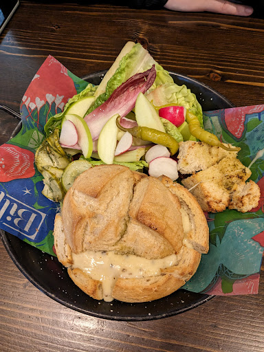 We tried the cheese fondue sharing starter and this was okay. The side salad had no dressing, seasoning, not even a drop of olive oil. Just the veg on the side. The cheese fondue was tasty, although I would suggest using an actual bowl and having more bite size pieces. The majority of it was pretty tough, even for me and I'm someone who likes things crunch. I wouldn't recommend it as it currently is.