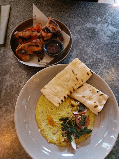 Read moreWe came here at 18:30 for a Sunday roast. When we arrived we were told that they were out of all of the roast options (even though we called the day before to ask if this is likely to happen and they said it was incredibly rare). As we were looking at the menu, we were then told that they did have roast options, they had managed to prepare items that they had previously run out of. We ordered 3 starters and 2 pork belly and 1 lamb roast. The starters were to die for! The hummus, the calamari and the chicken wings were all delicious. Then the roasts came out. The lamb was beautiful but both pork belly slices were very small and one was about half the size of the other! We commented to the waitress who was very apologetic and said that they would discount us as that was the last of the pork. Then a gentleman came out and offered us some beef in addition to the pork which was very kind. The beef was very nice. We then ordered dessert, 1 chocolate fondant brownie, 1 cookie dough and 1 mango and strawberry cheesecake. The waitress told me that the cheesecake didn't come with pieces of mango and strawberry but was still delicious. I thought the actual cheesecake was mango and strawberry flavour but it wasn't; It was vanilla flavour and the only thing that made it mango and strawberry was the missing fruit! I was really disappointed because the menu is quite misleading and the waitress didn't really explain herself very well. I told the waitress I wasn't happy and she was really lovely and offered to get me something else. I ordered the lemon tart instead and I'm so glad I did because it was probably the best lemon tart I've ever eaten! When it came to the bill we were charged full price instead of the Sunday roast offer so I had to ask for it to be rectified. Overall the atmosphere was fantastic (apart from the music being a bit too loud), the staff were fantastic and despite a few mistakes being made, I still wouldn't hesitate...