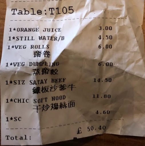 What I like about this place is that it is no frills: Good food, no msg (or so little that it eludes my palate), clean, attentive and efficient service. For two people, we usually spend about £50-60 per meal, and we do order generously.