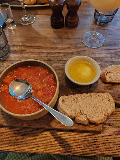 However......things didn't get off to a good start when the moment we sat down, the waitress reeled off a list of things they hadn't got, which by the time we were ready to order, had grown forcing a quick rethink. I opted for the "Spring minestrone" which was certainly packed with an assortment of veg (which was very tasty) and served with two slices of bread and some butter, or at least that was the intention as someone had the brilliant idea of putting it all under the heat lamps which unsurprisingly, caused the butter to melt and the bread to dry out. But chef still sent it out anyway.
