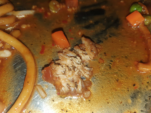 We ordered our vegetarian food anyway as we saw them add water and swirl it around the wok. Took the food home, plated it. After eating nearly most of it I chewed a big piece of chicken, was extremely annoyed and angry that people are so careless because it's not something they believe in.