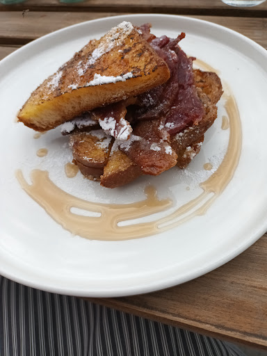 Some what quirky menu in places which for me made it even more interesting. I had their take on eggy bread with bacon and syrup, l think it was called eggy custard bread and you had a choice of toppings from pears, nuts or bacon (l can't remember exactly). My husband had a cheese, ham and homemade pickle sandwich topped with what they call mon-ster munch -different and delicious.