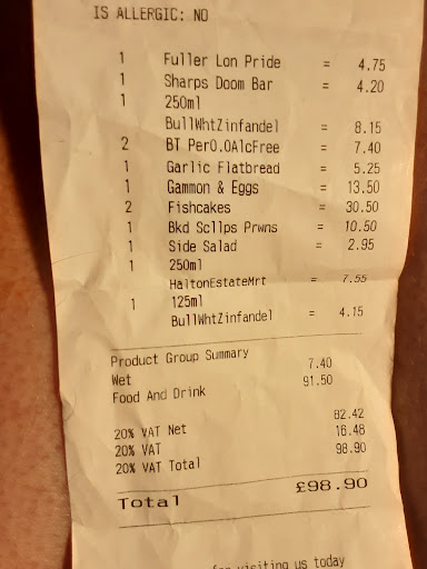 Read moreWe went for my birthday meal as we absolutely loved the pub and its food. It started of well. Attentive friendly staff on hand. The pub wasn't busy with only a few people sat in the area eating. The starter came out, which was lovely.....we're do I start with my main meal!!!!!! I ordered the sea bass. It came with a creamy sauce with prawns mixed in it. When it arrived the sauce was cold and so was the prawns which i had eaten half of one. I asked the waitress if this was how it was ment to be as I wasn't sure. She said no and took it away. The next plate came out, the plate was stone cold and the sauce had been slightly warmed. I told them it was still cold. They took it away. I was told they were just going to re-heat again!!!!!!! Surely re- heating prawns 3 times and not properly could cause some very nasty side effects! When It came back the 3rd time I just ate the fish and potatoes as it was only jusy warm...again. It was the same prawns and sauce as I had cut one of the prawns in half and had eaten it the first time it came out. They had just scraped it from one plate to another 3 times. The pudding was okay. Our waitress said I could have the pudding for free as my meal was bad but there was never an apology. Once our puddings plates had been removed, no staff came back. We was not asked if we would like any more drinks throughout the meal. So after 1 drink, and awful meal we gave up and left. No one around to ask for the bill, so we had to go to the bar. The only postive note, my partners meal was lovely. Very very disappointed with what was once a lovely place to go and eat. What has...