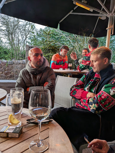 Just the most perfect little pub full of love. The sort of place you can dress right up ,or turn up in your wellies with your Labrador and still feel fab. Amazing friendly service and staff and delicious food . Atmosphere is always warm and welcoming , the sort of place a lady could go on her own for a glass of wine and read a book or paper and not feel uncomfortable. Lots of attention to detail and beautiful outside twinkly light area to .. Live Jazz on a Summer Sunday lunch ..... perfect Highly recommend you go to the Woodies a special little place that wraps itself around you Claire...