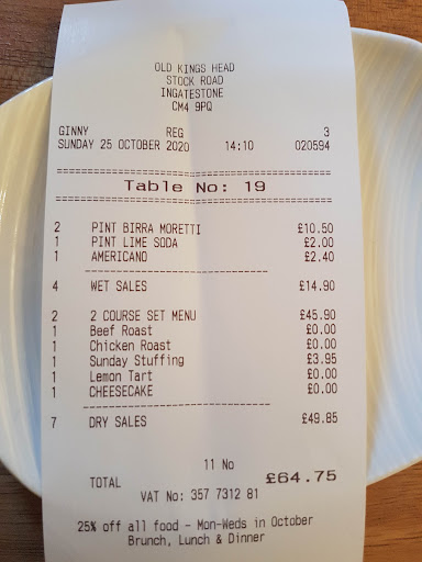 Read moreWell , where to start , food is good we had the roast...but then went down hill from there on in ....we where informed that they are only doing the set menu of a 2 course or 3 course meal prices of £22.49 or £28.95..not a problem , until later when I checked menu and a roast dinner on its own is only £8.95 so that would mean that they are charging £12 for a dessert when done as a set meal ...not good ..then to top it off we were over charged, they had put desserts on top of our bill ..obviously I got the refund for the £13 which is the cost of 2 desserts...so add £8.95 x 2 +the £12 , the cost separately is onlt about £15 per meal prices for the set menu is extortionate....So no not happy at all and definitely not a recommendation...plus ALL staff even Manager seem to be aged between 20 and 25 years of age so very young and not a clue as to what they are doing ....p.s also don't seem to know what a shandy is and know children's menu so not really suitable for a family...I do not recommend and will not...