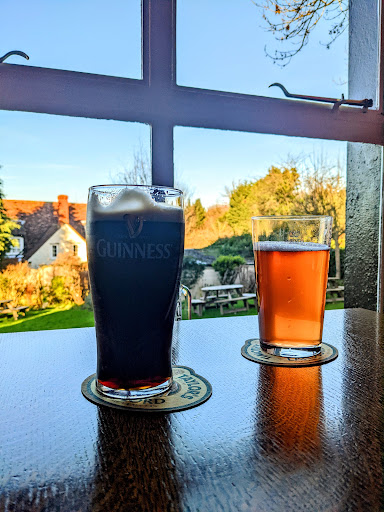 Read moreAfter a walk at Paper mill lock, we headed up the road to find this pub. It's a lovely looking pub set in a big garden. Inside is even more impressive with beams and low ceilings. We were met by a friendly landlord and lots of locals. It's a cosy little space around the bar, so we jostled in and chose drinks. At least the ales on tap, lots of other beers and ciders. Their speciality seems to be a Vodka list that takes up a full page of A4.