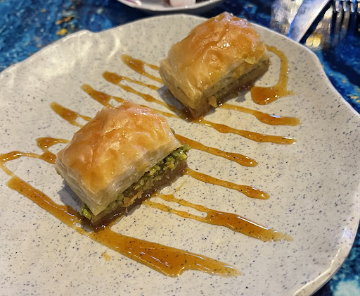 The service was also excellent and friendly and we promised to mention our new friend Ismail from Turkmenistan, who certainly is an amazing asset to the team and restaurant ; ) But seriously, it was a really nice stay and very friendly staff at the Turquoise and the overall experience was very laid back, nice lounge music, good relaxed atmosphere and great food. What more can you ask for. The price for the meal was also good value for money, maybe with a slightly updated salad option, but I guess it's often just garnish anyway. This and the slightly less crispy borek led me to only giving four stars instead of five for the food.