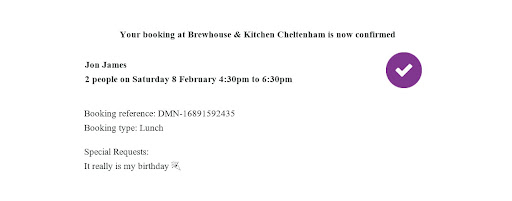 Shortly afterwards, we received another email to say our enquiry had been cancelled ādue to popular demand and limited availabilityā. As the email referred to enquiry rather than booking, I thought maybe there was a mistake with the system so called the restaurant directly to make sure our table was still booked. After speaking with the restaurant, they confirmed our booking was showing in their system at the time we had chosen.