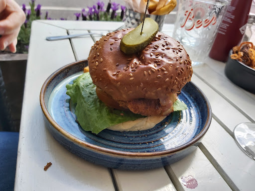 This is a large and busy pub, at which we have eaten a few times in the past. It’s something like one of the better Wetherspoons pubs. It’s very well-placed when attending jazz festival concerts. We had reserved a table which was vacated for us.