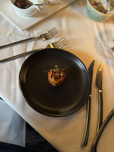 The tasting menu started with an amuse bouche which was not explained to us. Everything else has been served from a different waiter which made the experience more pleasant and guided us through the menu. Of all the courses the only one that really stood out for me was the duck, I found everything else was not up to the usual a la carte standard (and on that night there was no choice between tasting menu or a la carte). Some flavours were really overwhelming because of the quantity of some stronger ingredients, for example I found that the scallops and the salmon were kind of covered by the sauce flavour, which was kind of a pity. The sorbet in between courses was a good idea but I found it way too sweet. We also asked for the fillet to be medium rare but came out more similar to rare.
