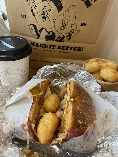 Had two special bagels with tots and 2 cup of coffee, spend around £27.5. The bagel is too tough, after had one bagel my chew is hurting. Probably the bagel can be put in a toaster 10 seconds before serving? It’s cold and very tough. Flavour is fine, not impressive (there are few coffee shops in town had much delicious bagels). Coffee is too expensive and pricey. £3.5 for a regular latte, I expected come with a mug. But then realised it’s all take away serving packaging. So I got a very small take away cup, height is round 4 inches tall and skinny. Feels like it’s a small size not regular (there are only two size, small or regular). For the amount of coffee, I am only willing to pay no more than £2 instead of £3.5. And as the shop is cooking indoor, in a very small indoor space even no toilet and few standing seats. The cooking smoke is not properly dealt with. After having the bagel in store, sit around 10 mins, and my clothes smells very smoky, cooking smoky, after leaving the store. Plus, my phone doesn’t have a good signal in the store, couldn’t search anything and I saw there have Wi-Fi but needed password. So I asked girl works there but being told Wi-Fi is only for staff, customers...