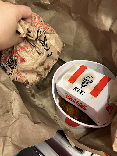 Read moreI am a regular customer this time i was disappointed on this particular visit, maybe i should have gone at a earlier time in the day it was somewhere around 9 pm. Orderd chicken strips meal with a large gravy. Then cashed in my free chicken strips x3 or 4 reward fron the App to sit in and eat. Then I had a phone call to get a take away pop corn chicken with a krushum. Unfortunately the malteaser one was unavailable so had to go for the milkybar one. Then a zinger meal without mayo with cheese. (this customisation was correct so at Least my lads were happy when i got home) Unfortunately the chicken strips were not moist and succulent like they usually are on daytime visits, they were hard crispy around the edge's like they had been cooked ages ago and left somewhere to keep warm. The gravy was like water, never experienced this before and then to top it off the game that you pick the hammer with on the app couldn't have been working how it should as i choose one and snother hammer was chosen??? Msybr thetr was grease on my fingers that got on to the phone screen So Not sure how that happened, had i won by mistake i would have been happier i guess. Oh well cant win them all. Im sure ill be back with my fingers crossed for a better experience as im hoping this is a one off and not that their standards have dropped.