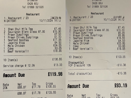 Hereâs what happened- When we got the bill, I noticed that the price of some items didnât seem right and I checked this with the photo of their menu in my phone (I took it for my friend to order his food as he was queuing to pay at a shop). Once confirmed, I raised this to the staff and was told that maybe my memoryâs a bit off cuz the system had the prices listed as such. I then showed him the menu picture I had on my phone along with the timestamp. Then I got a new excuse: âThe menu has recently been updated, and you probably got an old version." We were sure that the menus we all had were the same and there was no chance of only me receiving the wrong menu due to a careless mistake (we had complained about the price of the bubble tea before ordering đ). We also felt that it wasnât reasonable to be charged extra after ordering based on the menu prices. The staff went to talk to someone at the till then apologised to us that was a system error, and that they would correct the prices for us. At this point, we asked if they could also remove the service charge. Shockingly, his response was, "Iâll ask." (While this was a discretionary charge anyway, and itâs not hard to understand why we wouldnât want to pay it). Finally, we received an updated bill, but oddly, some item prices were still incorrect. However, they gave us a 10% discount overall and removed the service charge, so we didnât dig deeper and just paid and left.