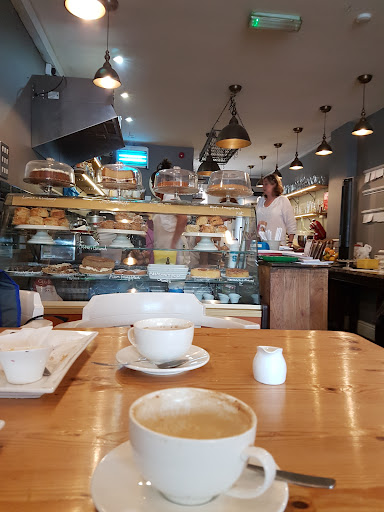Too many tables crammed in. Makes it very noisy and the staff are constantly battling to get by. The food. Small piece of tart and some salad leaves is £8.50..Its little more than a snack. Mine was the brie, bacon and cranberry and it was very dispponting. The cakes look nice but it was just so busy and noisy I found it unpleasant and didin't stay any longer than I had to. You also have to pay in the adjoining shop which is a real pain as it took over 10 minutes to be...