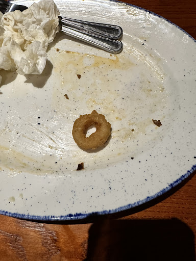 Eventually all the food was served after several mistakes of food not been what was ordered. Unfortunately the food was greasy, onion rings definitely not large, steak not medium rare and a naan bread that left the customer requiring dental surgery.