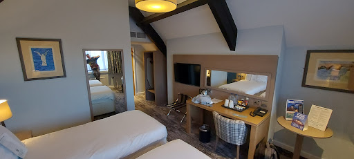 Hotel review: Rooms great, clean, tidy and cosy with everything you need for a short stay, staff super friendly, room came with some biscuits which were ginger nut flavour and when I made a joke about not liking ginger, the kind lady on reception said have some of these choc chip biscuits and shortbread, well chuffed! Bathroom great, lovely spacious walk in shower with rainfall head - might benefit from a curtain as some water does ultimately end up on the bathroom floor but apart from that there's shower gel and hand soap provisioned on the walls. a couple flights of steps down to the pub, all smiles down there, usual Wetherspoons affair, service great, bench seats could use a bit more padding though! Would happily stay again as it was right in the centre of the town.