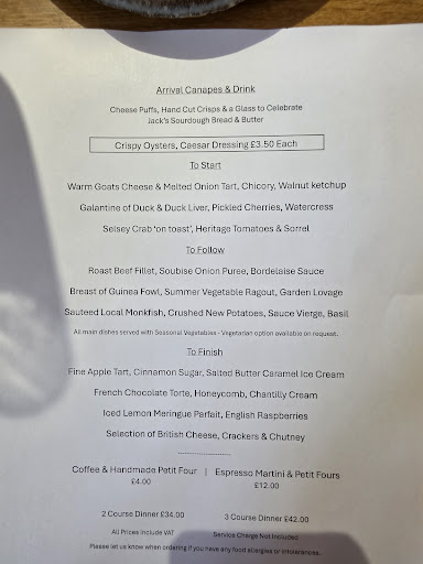 With a birthday to celebrate & it being Hallidays 25th Anniversary, what better way, than to celebrate them together with fabulous food. As soon as you enter you're thinking ' this is nice', with the size, exposed beams and decor giving you that comfy, cosy feeling. We opted for the 3 course menu and struggled to make decisions as what to have - too many yummy things. Hallidays had made their own celebratory fizz - inc prosecco, chambord & a raspeberry- quaffable! Accompanied by home made cheese puffs and hand cut crisps, of course, both were top notch. Starters were the goats cheese tart & crab on toast - both winners for us. Main courses were beef fillet (cooked perfectly medium rare) & local monkfish. Puddings of apple tart (amazing presentation, never seen it served in that way) & salted caramel ice cream as well as chocolate torte with honeycomb. Both puddings were sublime, but think the tart won the day due to combination of the flavours & presentation. This restaurant has restricted opening days/times, so it's very much recommended to book in advance. Overall, this was a cracking meal in a friendly setting, one that I whole...