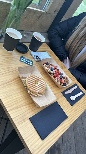 First time here so wasn’t quite sure what to expect. Well what an eye opener! Sat in a shack in a field with rusting corrugated roofing with overhead 1 bar heating from the 1960s. The toilets albeit perfectly functional reminded me of a Boy Scouts Field Loo, even the sinks to wash your hands were improvised horse troughs. The whole ambience was/is totally unique, I was totally taken with the place, absolutely fascinated, such a wonderful experience. Now to the food, there was 6 of us including 2 kids. We all had variations of breakfast food stuffs. The kids are well catered for with smaller cooked breakfast portions or fruits, Nutella, cereal etc. Us adults all had a cooked breakfast in various guises as you can basically build your own item(s) stack in a sarnie, bagel, baguette, wrap, panini, bap, roll, etc you get the picture. I had what I can only describe as the best breakfast baguette ever!! A large fresher than fresh baguette full with Treagust sausages, really thick cut back bacon rashers and a fried egg, it was cooked to perfection and was extremely high quality produce and truly very satisfying. We all had hot coffees and the kids had smoothies. The only drawback was the Coffees could have been hotter especially the latte’s. All in all I loved the place and the food is delightful at sensible prices; £60 for 6 breakies and drinks. I will be back. Oh sorry! the staff are wonderful and very...