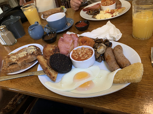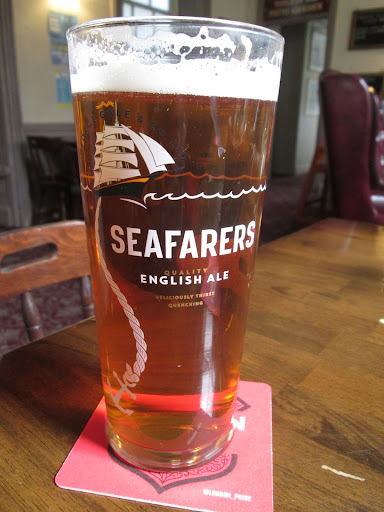 We had lunch in a typical small pub, not at all fancy or posh, but they served basic good pub grub. I had a pint of Seafarers English ale, the first time I'd tried that, and a burger with chips and salad. When I went to the bar to order, an old boy, who looked he'd been sitting there since the pub opened that morning (it was about 1.30 in the afternoon when we were there), said to me: 'See - it takes an American to make good music, dunnit?' I looked puzzled, and he explained. 'That's American music [on the jukebox] and you're American, aren't you? I could tell when you walked in 'ere.' I said yes, I was. He asked me how long I was here for. I said I'd lived here for over 20 years. 'You 'aven't lost yer accent, 'ave you?' he replied. 'Why'd you want to move 'ere? You've got ever'thing over there, even Indians.' His friend said: 'Indians? D'you mean Red Indians?' 'Yeah,' replied the first man, 'Indians, they've got ever'thing over there. I've seen them John Wayne films.' I then said that my wife was English and didn't take to life in the US, so we moved here. He wished me well, and the barmaid smiled and gave me a knowing wink. I returned to our table and said to my wife:'I've got a new friend.' She said she saw what was going on and then rolled her eyes to the ceiling. Our food arrived in good time, and the staff checked afterwards to make sure everything was OK. Top marks for...