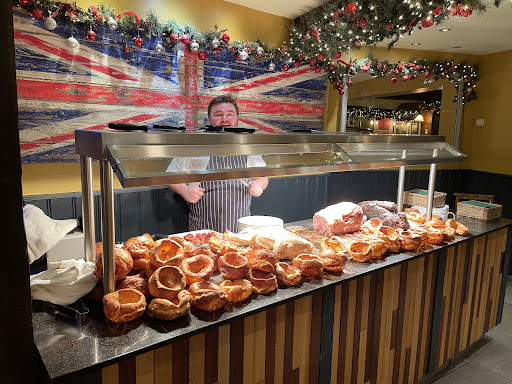 So I made a reservation and there we were. We didnt know the dynamics of how this was going to be. We told the lady we wanted to go for the carvery. She told us to grab a plate and head on. There wasnt a long queue since it was about 5 in the afternoon. There were I believe 5 kinds of meat on thr long table, the meat carver was kind enough to tell us what it is and recommended as well what to get. They had the lovely beef, ham, turkey, chicken and lamb (as far as I can recall). I had a slice of beef and a slice of ham. He also offered their massive yorkshire pudding made inhouse! Mr. Carver said everything is made inhouse and they take pride in what they do. We moved on to the sides and there were loads to choose from. I loved the brocolli and cheese 😁 had crispy potatoes too and theyre lovely, and i tried everything else. The staff was busy refilling and refilling. I had some gravy on the side too. You cant miss that as its a must. Sat down and inhaled the food. I thought it was American style where I could go back for another serving. 🤣 no wonder some peoples plates were dripping and looked like a mountain of food. 🤣 Now, I know the strategy. Til next roast Nags ❤️ thank you for a...