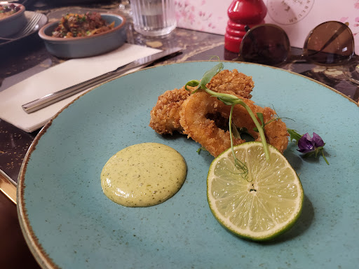 A group of 8 of us booked the bottomless brunch (paid in advance as this was an organised event). £32.99 for 'unlimited drinks' and '3 tapas served with pitta bread' for 90 minutes. Upon starting our 90 minutes, the waitress tells us the 'rule' that every single person has to have finished their drink before anyone can order another. This is not mentioned on their advertisement for the event. I believe this is, in 2025, a ridiculous rule. Not everyone is a big drinker, and this rule forces people to feel pressured to drink more/faster than they can handle so that the rest of the table can have another drink. Or, it means the rest of the table are ripped off and cannot in fact get 'unlimited' drinks. Over our 90 minutes, we had only four drinks each, most of which were also in small cocktail glasses. Nice drinks, but not so 'bottomless.' The organiser of our event also paid extra in advance for the 8 of us to have shots as a nice surprise. The shots never arrived, and because it was supposed to be a surprise we didn't know to ask for them until the organiser messaged us later once we had left, to ask how the shots were. Then the tapas. 'Served with pitta bread.' We received a tiny plate of pittas for the table, cut into halves. There were 8 of us, and only 5 halves of pitta. Not even one each. The portions of the actual tapas were laughably tiny and we all left hungry. The calamari was only two rings of battered calamari. The halloumi was three tiny pieces of cheese. Photos attached. Again, the food was good quality, but I struggled to actually find it on the plate. The staff were good, they forgot one tapa but immediately rectified it. It's not the fault of the wait staff that they're forced to be so stingy with the food and drink. The music was so loud that we had to shout to hear each other, could only speak to those immediately beside us, and couldn't hear the waitress when trying to order food. It was a 3.30pm brunch, not exactly peak rave time, turn the music down. Value for money was the worst by far of any bottomless brunch, actually any meal at all, that I've ever been to. Total rip off, would...