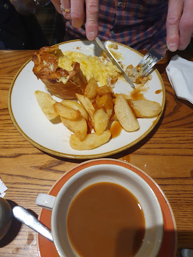 Read moreWe have visited the Boars Head on a number of occasions over the last five years and always had an enjoyable experience, whilst eating tasty food. However Sunday was a completely different and disappointing experience. We arrived at our booking with plenty of time and got shown to our table. After negotiating two other tables we were parked in a dark corner towards the right of the bar. We couldn’t sit side by side or even opposite it was that pokey. On squeezing/sitting down it was hard not to notice the dirty table with remnants of food and stickiness on it. The lovely waitress took our drinks order and brought some menus. These could also have done with a good wipe I ordered a large pinot. Oh dear, it was like fermented vinegar! We ordered our food hoping for some optimism. This took 30 mins to arrive and when we eventually saw it coming, the poor waitress couldn’t get through to our table. After some negotiations and removing countless chairs, prams and people, we eventually had our food. In all honestly, it wasn’t brilliant. I had cheese pie, the crust was burnt and the chips raw. The other dish was steak pie, this was nice and cooked lovely. All in all it was a disappointment. We felt we couldn’t really talk as we were more or less sat with another table, the place was not over clean and the food overpriced. It wasn’t even busy so no excuse there. The only upside was the lovely...