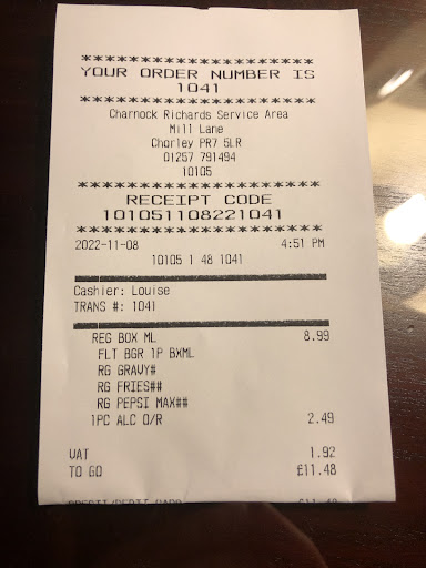 Read moreStopped at this service station on Saturday. My husband wanted KFC - very fast to order using a screen, but lack of staff resulted in a long wait for orders. In addition, if someone didn't want to use the screen, one of the limited number of KFC staff had to stop preparing orders to serve them. I also waited ages to get served at Starbucks there, due to lack of staff, then there was also a long wait for a coffee. Waitrose was having problems and could only take cash! The upside is that it's a great place to stop to eat your OWN food - lots of seating available - and the toilet facilities are very clean. I'll avoid this service option next time...