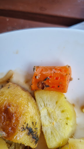 The veg was very aldenti to the point of the parsnip being told about steam but never coming in contact. Plus carrot had an eye poor quality control. Plus it was the only carrot.