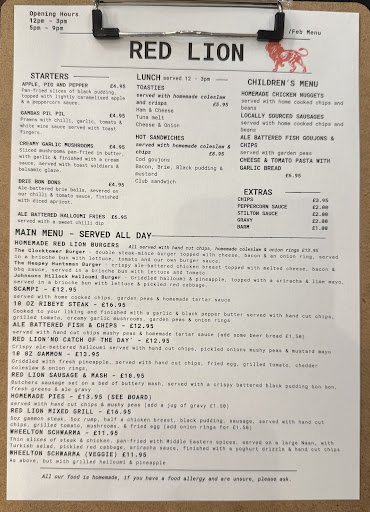 Read moreI cannot disagree more with the comments below, The service I have received over the past year from the New landlady and landlord, Claire and John, has been nothing short of brilliant, always being made to feel welcome and inviting, as all local pubs should be. I have ate there on numerous occasions for both the Sunday roast and the curry night and cannot find fault with both quality and value for money. I feel the review below is from a misery guts who just likes to find fault and complain. As for the dog comment there is a notice outside the pub stating that dogs are welcome and this should have been considered before entering if your not an animal lover. The Red Lion in a local community pub that offers good home cooked food, all be it only two days of the week, and is not...