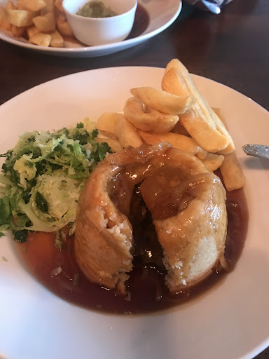 Both pies were very good. Decent filling and like the rest of the food piping hot. Staff confirmed they were home made. Chips were good. Evenly cooked. Mine came with white cabbage, my fellow diner got red cabbage. The pies were served sitting on this. My cabbage was lovely. They must have melted some butter into it as it was so tasty. However, like with the chips I thought the portions were a bit on the small size. And both pies though very good had some herbs added for flavour which they didnāt really need.