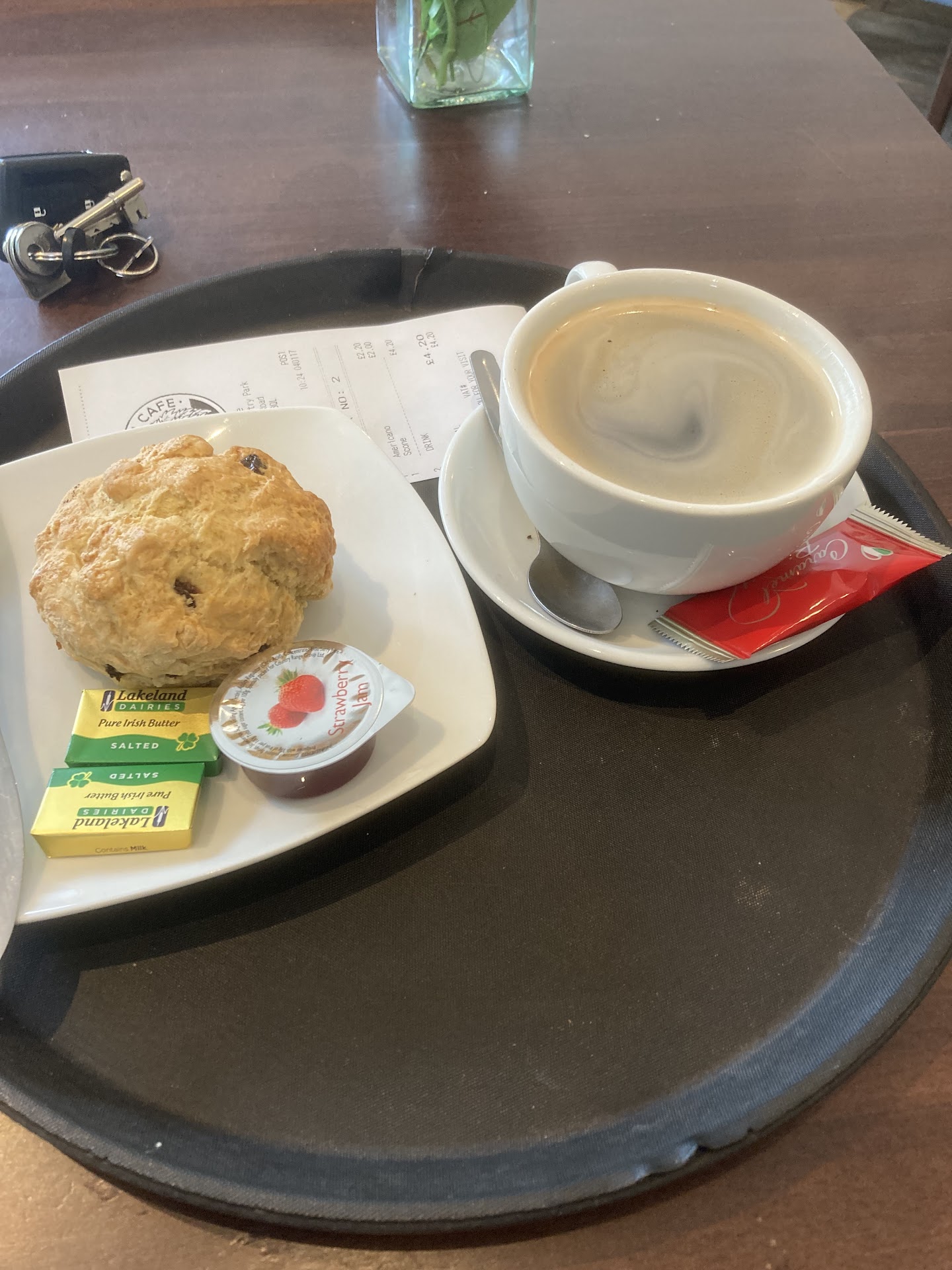 Read moreThis place is OK! I would visit again when visiting the park. But won’t rave about it to anyone I know. The coffee was quite nice but could have been served in a bigger cup! However I also had a scone and this tasted ‘on the turn to’ stale! The prices are very reasonable (which is why I hate the scone and said nothing) the couple of staff I saw were both very friendly! Sitting inside I got a waiting room vibe due to the colouring of the walls. Maybe something hung on the walls would...