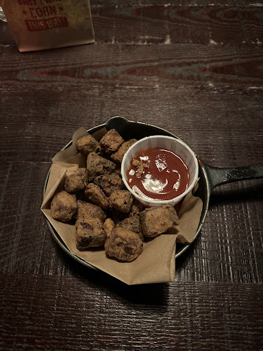 Juicy pickles deep-fried in a crispy Cajun spiced batter served with a pot of South Carolina barbecue dip.