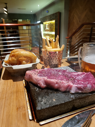 We were then given cutlery which was no sooner placed down as taken away as they realised it was dirty. After what seemed like an age, our drinks orders were taken and we ordered food. We were told that the prawns ordered for the starter would come with the shell on but items would be provided to wash our hands, and were told that the steak for the main would come on a sizzling plate so we could "cook to our liking". Somewhat perplexed and sick of all the delays, we proceeded.
