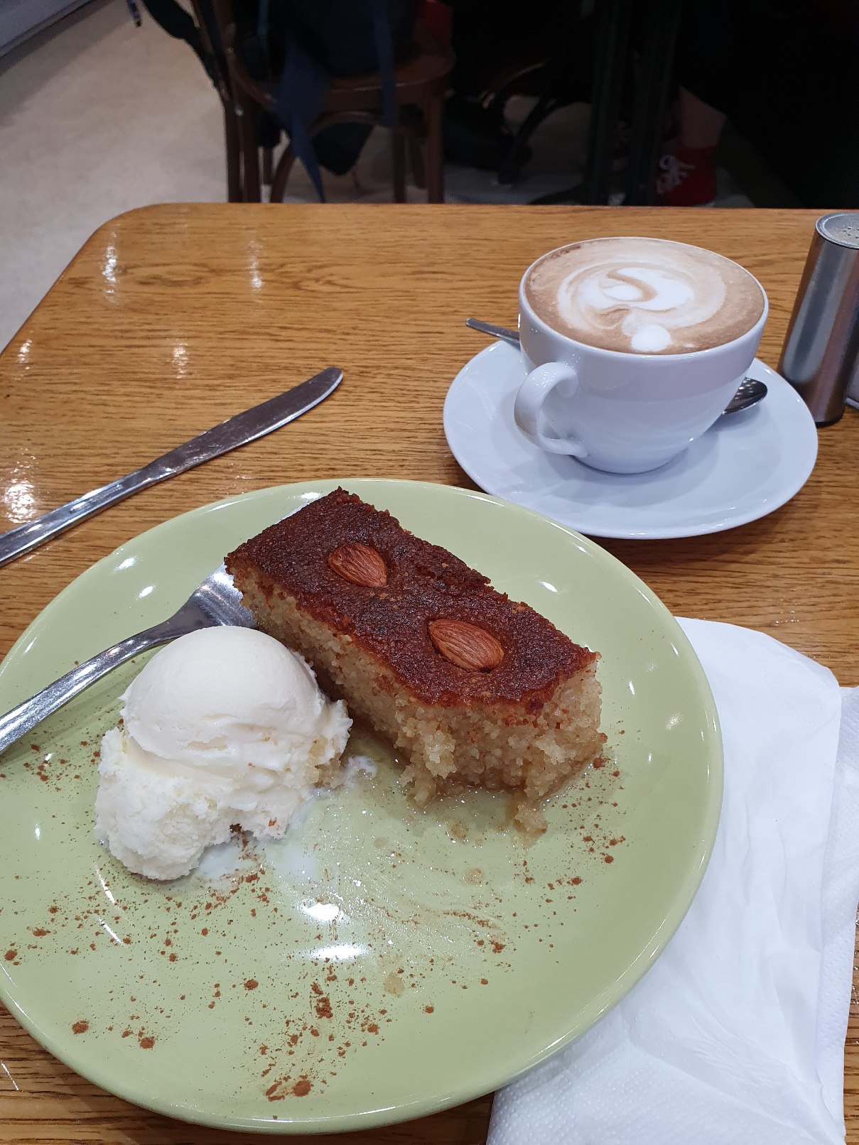oh my.. I just wanted a coffee, but this cake wanted me to buy it. it's called Shamali and it's basically 40% semolina, 40% syrup and 20% heaven. don't bother trying to find it. I'm buying it all! coffee was really good as well, so I shall come back and try more of the foods.. I LOVE this place!