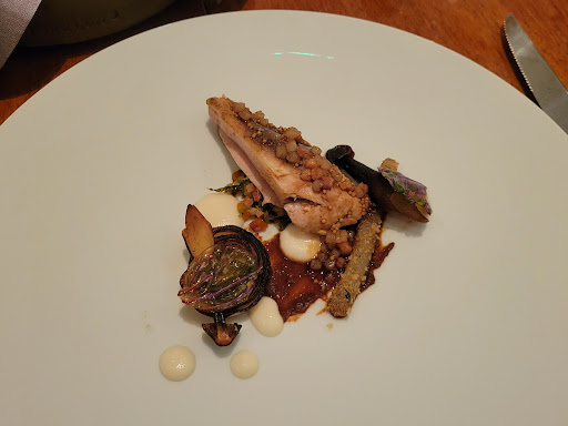 Read moreThe food was perfect, a masterful composition of flavours and textures. The service was polite and prompt, right up until the final moments of our dining experience. I don’t drink alcohol and had been enjoying the sparkling tea (a very nice accompaniment to the meal) but declined a third glass to go with desserts. My husband had the paired wines which he really enjoyed, but wasn’t offered a dessert wine which he would definitely have wanted. I can only assume that my declining the final drink was taken to mean both of us, but the waiter spoke directly to me and neither of us thought this would mean nobody would offer him another drink. It’s a shame because up until that point, Patrick had done such a good job and been very knowledgeable with his wine pairings.