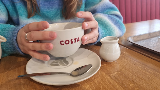 Read moreI'm in Costa daily, with various branches . Popped in yesterday afternoon. 1 person making drinks for the queue and the drive-through. 2 people cleaning the prep area and 1 wandering around re stocking . From the moment of service, I waited at least 10mins to receive 2 coffees. Looked around for a clean table and there wasn't one ! Trays and cups on every table and trays of used cups and half eaten food also along the window ledges where people had cleared their own table . Looked like some sort of management meeting going on at a small table . We walked out and sat outside !. I work in the same sort of business and would have been appalled and apologising at my customers getting that sort...