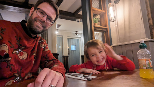 Our youngest and I decided to head for a boys night out as my wife and daughter were meeting other friends. We were greeted and quickly seated. We were at a table for 5, so amble space. It took a little while for us to get given menus and I ended up having to ask the service staff for a copy. I also asked for kids drawing paper and pens which unfortunately they had none left. After that the service was swift with taking orders and serving food etc. The atmosphere was good and lots of people coming and going, with it being a few days before Christmas this was to be expected. One thing I disliked, was the fact a dish is served sizzling and VERY smokey, not once but about 4 times while we were there, so clearly deliberately. Every time it set off the smoke alarm, which was just turned off. At one occasion the front door had to be jammed open to get rid of the smoke. Maybe a dish to reconsider as many commented on how it was too smokey not happy about the constant smoke alarm going off! Otherwise great and friendly service from the...